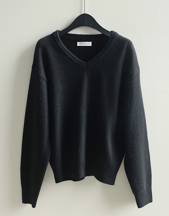 lambs wool V neck KNIT (BLACK)