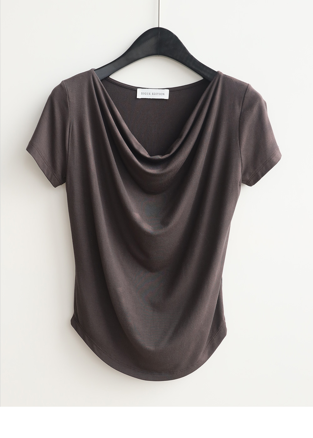 liz drape neck slim T (BROWN)