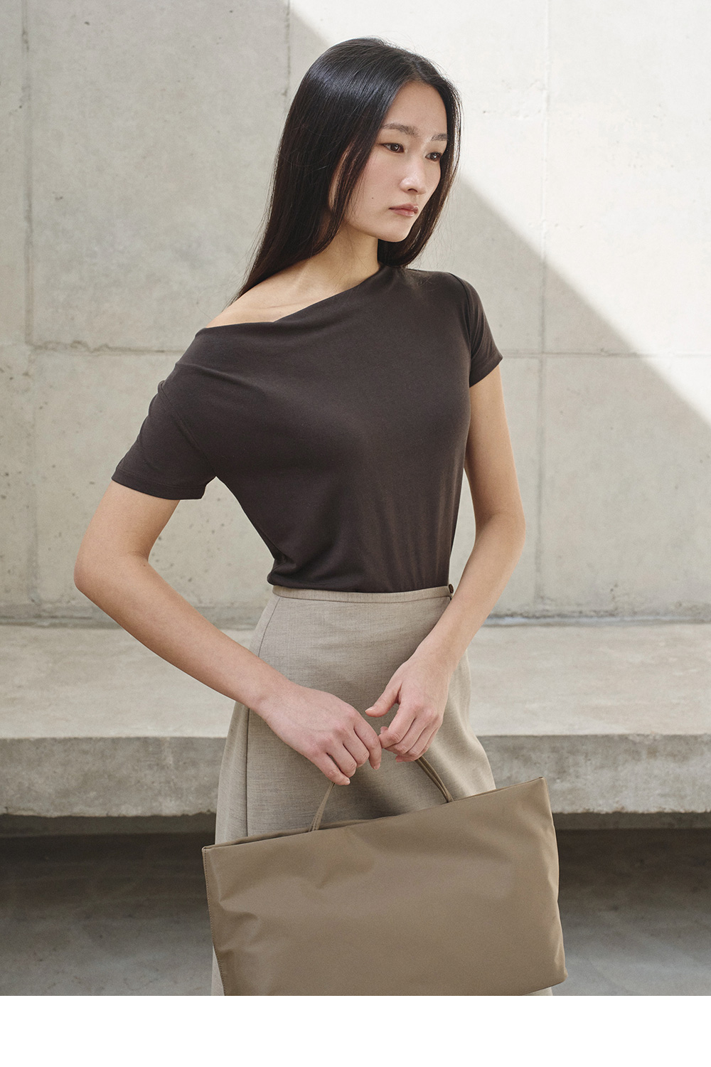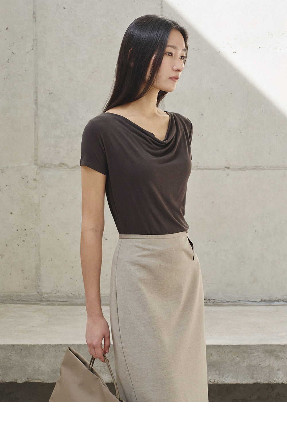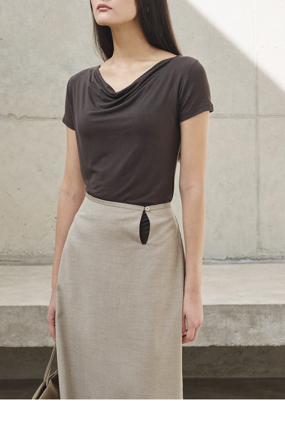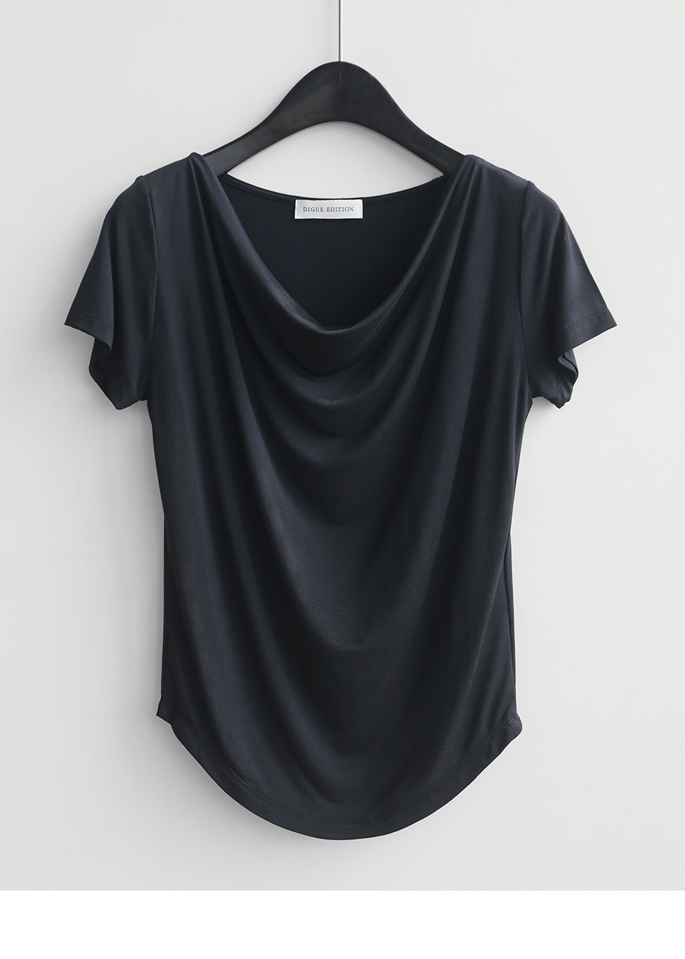 liz drape neck slim T (BLACK)